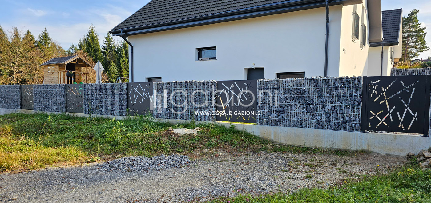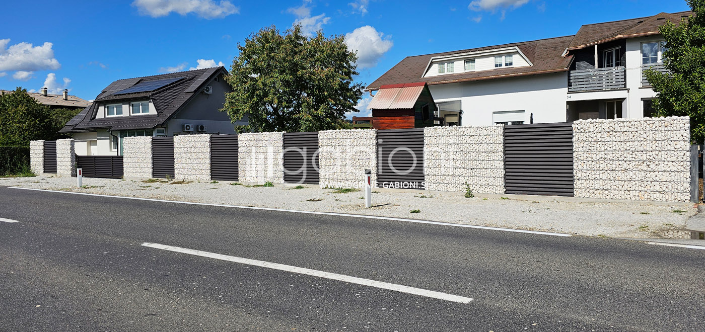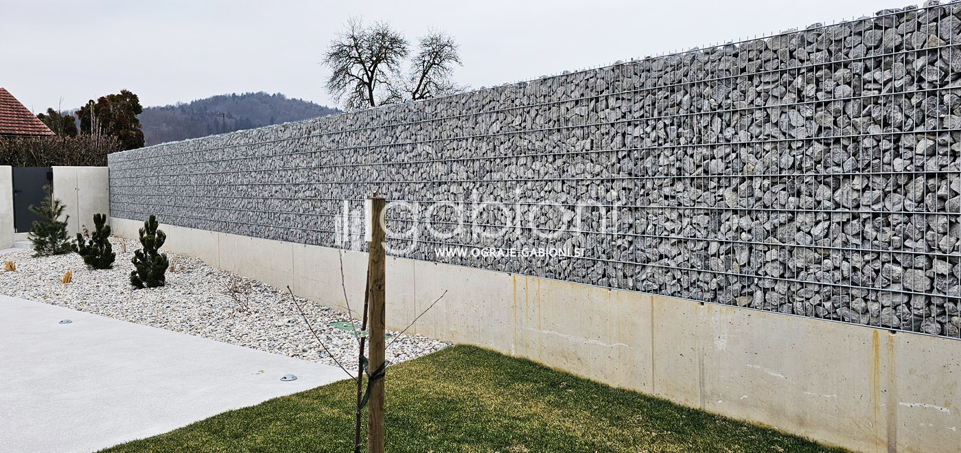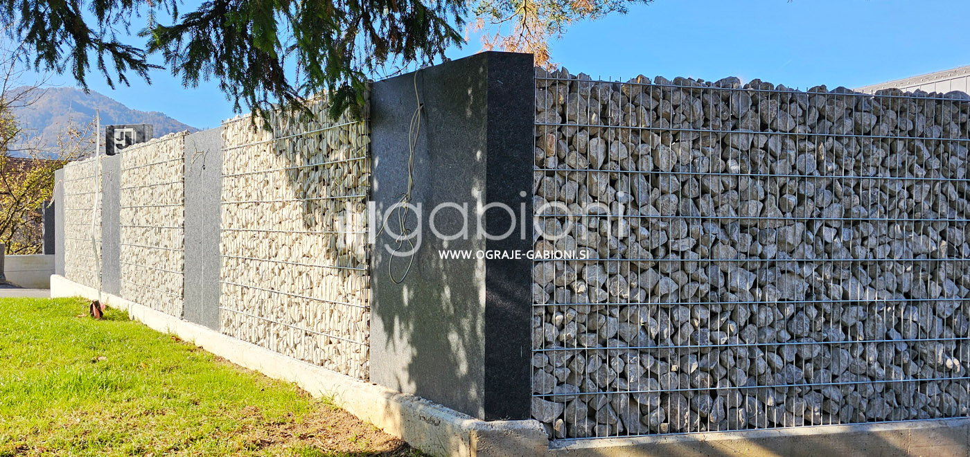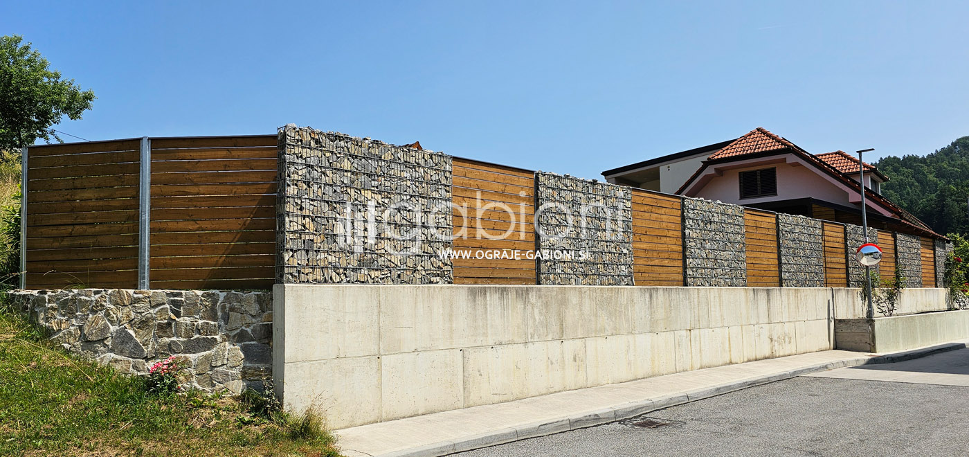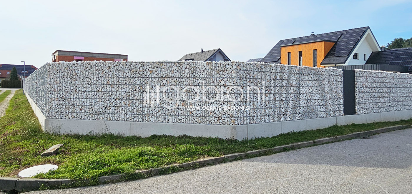 Standardne dimenzije panelov so 50x200 mm. Ograje gabioni lahko prilagajamo raznim oblikam in kotom. Kot edini na trgu nudimo gabioni ograje v loku. Prednosti gabioni ograj je močno in odlično zmanjševanje hrupa.