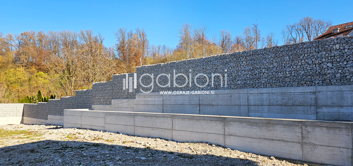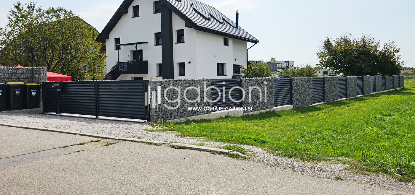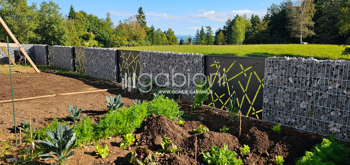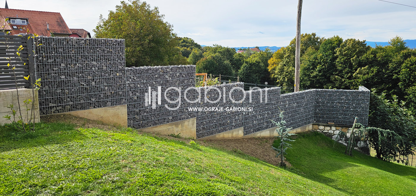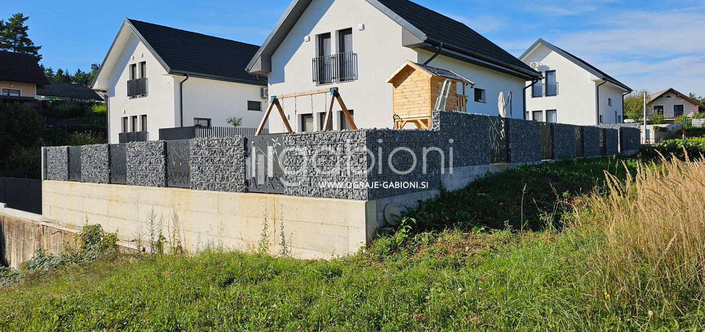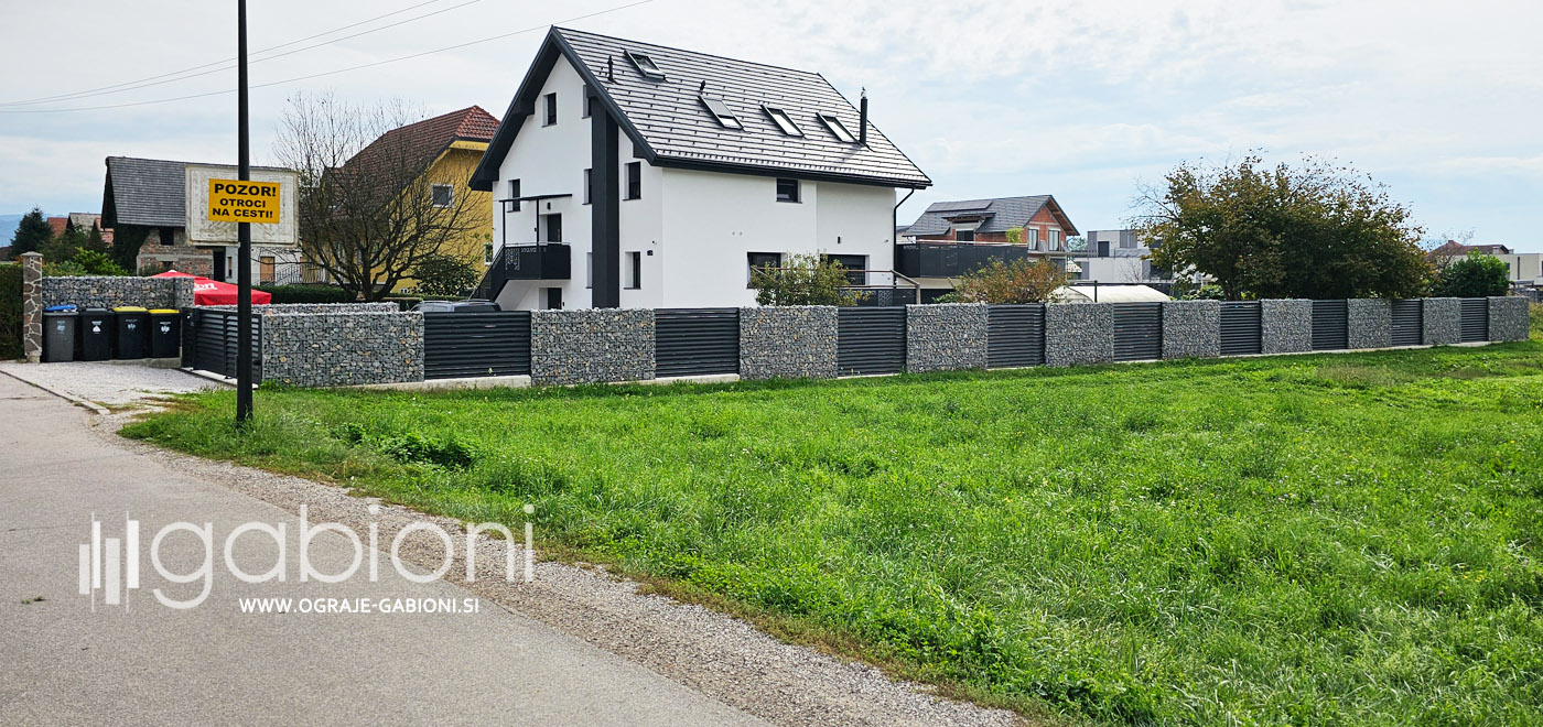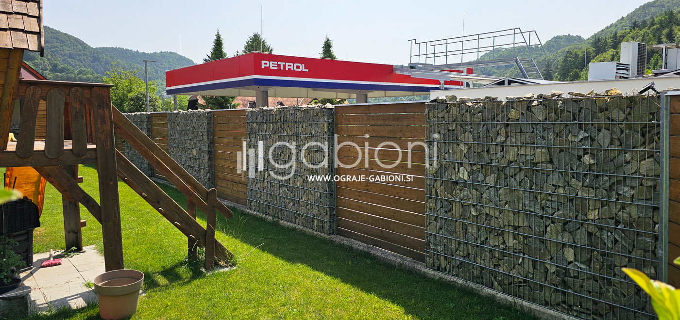 Standardne dimenzije panelov so 50x200 mm. Ograje gabioni lahko prilagajamo raznim oblikam in kotom. Kot edini na trgu nudimo gabioni ograje v loku. Prednosti gabioni ograj je močno in odlično zmanjševanje hrupa.